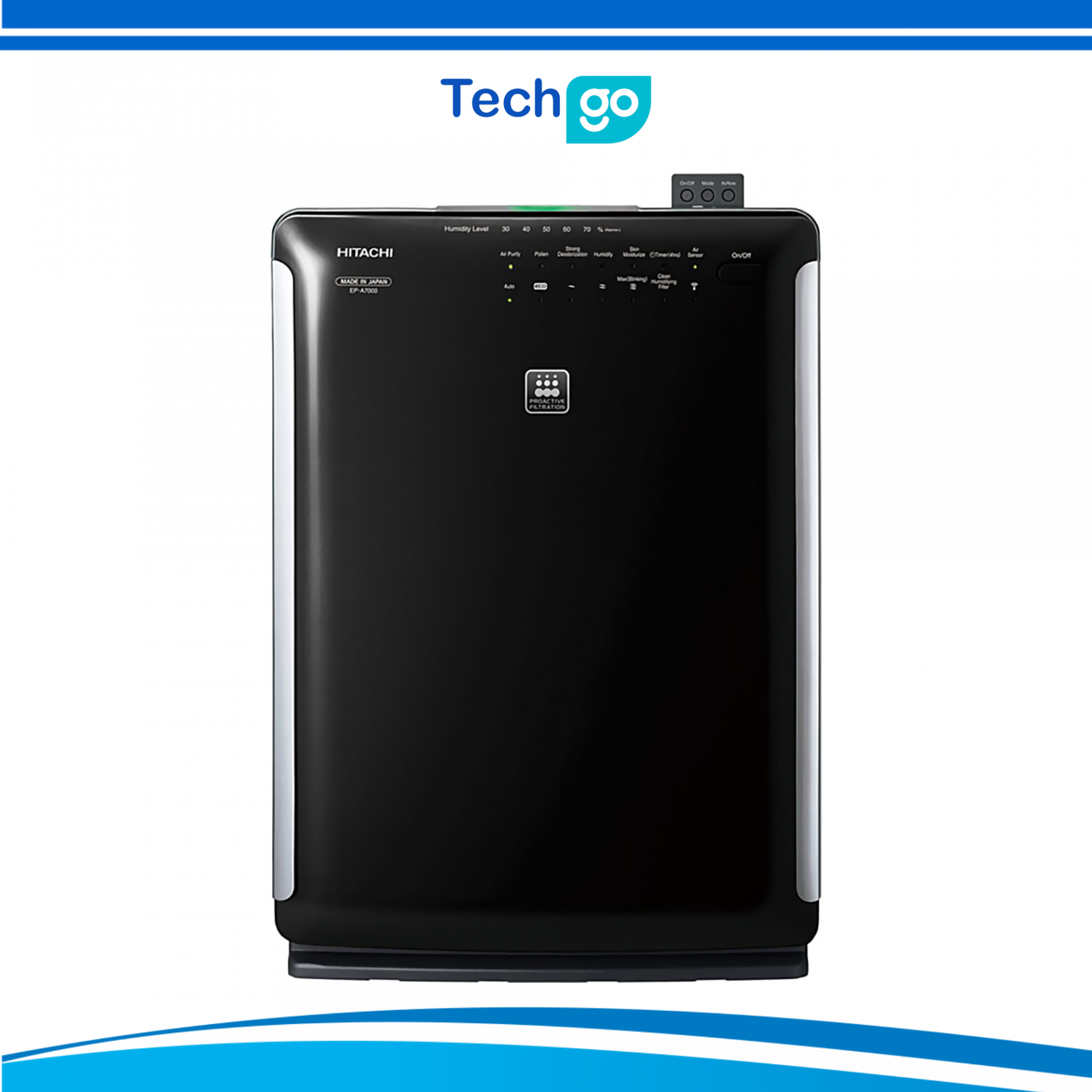 Máy lọc không khí tích hợp lọc bụi, khử mùi và tạo ẩm, sử dụng hệ thống lọc đa lớp (HEPA – khử mùi – tạo ẩm) kết hợp ion âm diệt khuẩn, phù hợp không gian khoảng 38 m², đồng thời hỗ trợ điều khiển qua ứng dụng và công nghệ Inverter tiết kiệm điện.